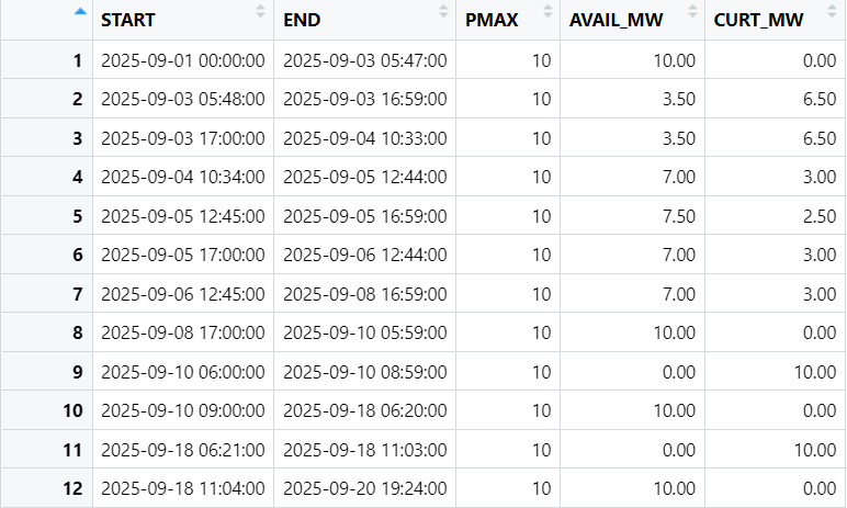 ~START, ~END, ~PMAX, ~AVAIL_MW, ~CURT_MW,