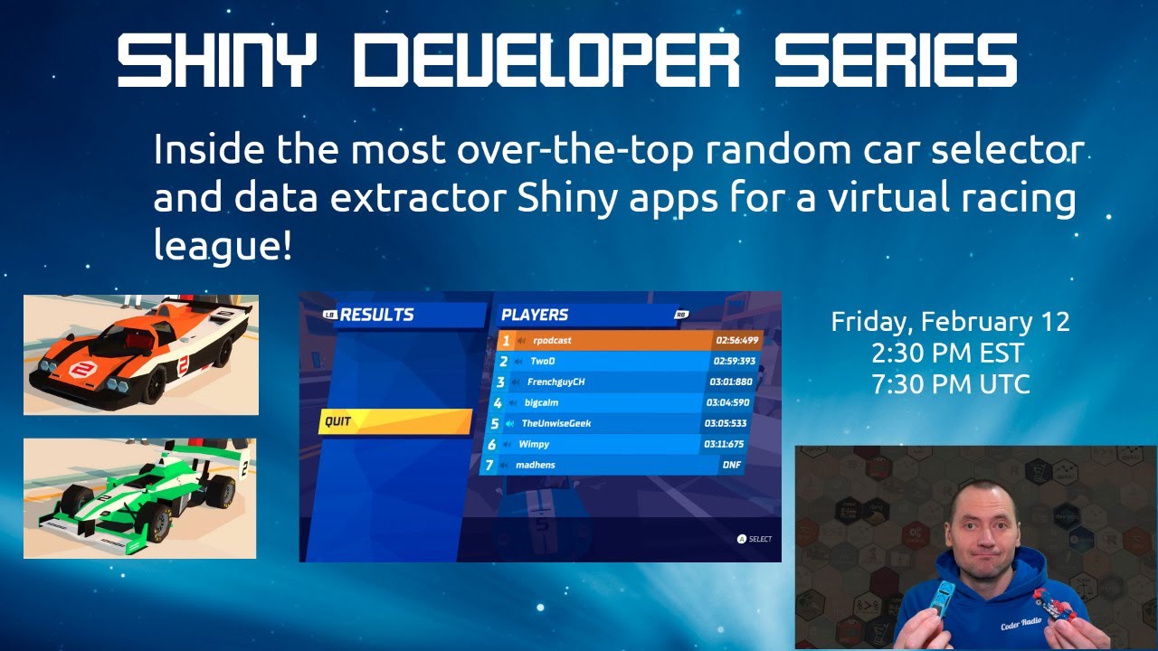 Repo: GitHub - rpodcast/hotshots.random: Shiny app to select random racers for Hot Shot Racing game streams!
