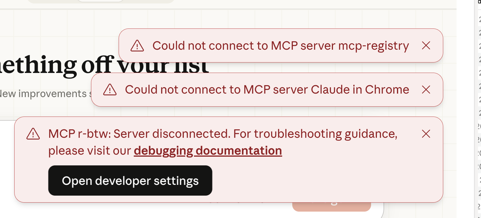 2026-02-21T22:06:12.280Z [error] [r-btw] Server disconnected. For troubleshooting guidance, please visit our [debugging documentation](https://modelcontextprotocol.io/docs/tools/debugging)