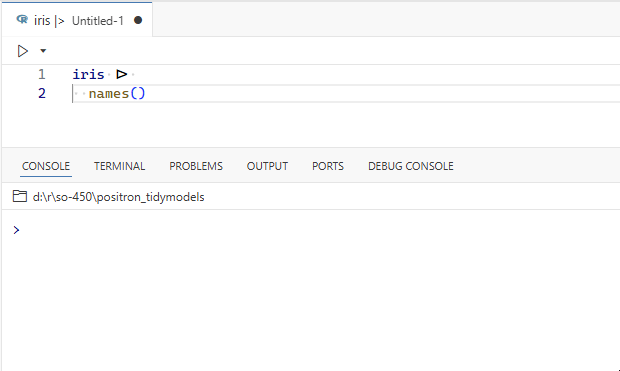 3. Create an R script with the following, put cursor on Line 2, try to run the entire pipeline with CMD+Return, entire pipeline is not sent to the Console. There is no error but clearly something is wrong.