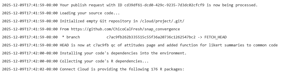 then after it installs a non-CRAN package (which it says it installed successfully) - the build/publish fails with a uninterpretable error message.